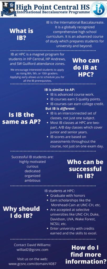 Do you want to know more about our IB program? Please each out to our IB Coordinator Mr. Williams immediately!