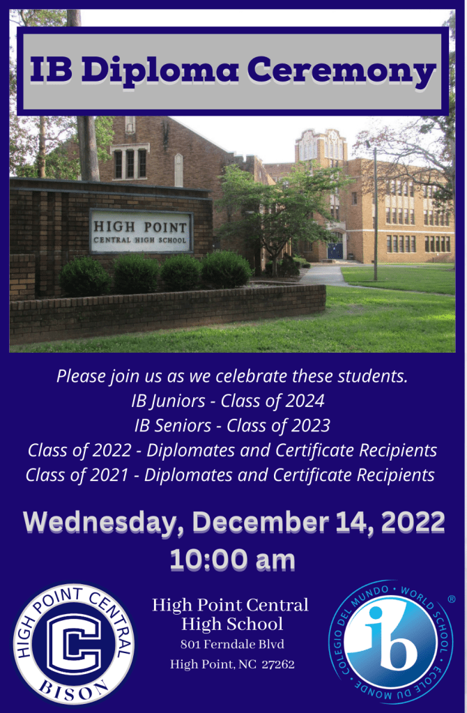 IB Ceremony, December 14, 10AM in the Media Center.