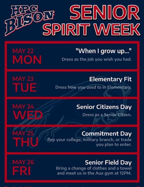 PTO meeting for tomorrow will be postponed to May 15 at 6:00 pm in the Media Center. We are still looking for nominations for our Executive Team. Please contact HPCBisonPTO@gmail.com for more information.