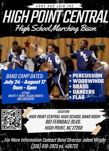 All freshmen should attend! This event will be followed by a carnival for all 9th graders who attend. Lunch will be provided along with a complimentary shirt. This orientation is for students only! Students will be acclimated to the operations and expectations of High Point Central in order to ease anyone’s anxieties and best prepare him/her for a successful start to their High School Career.