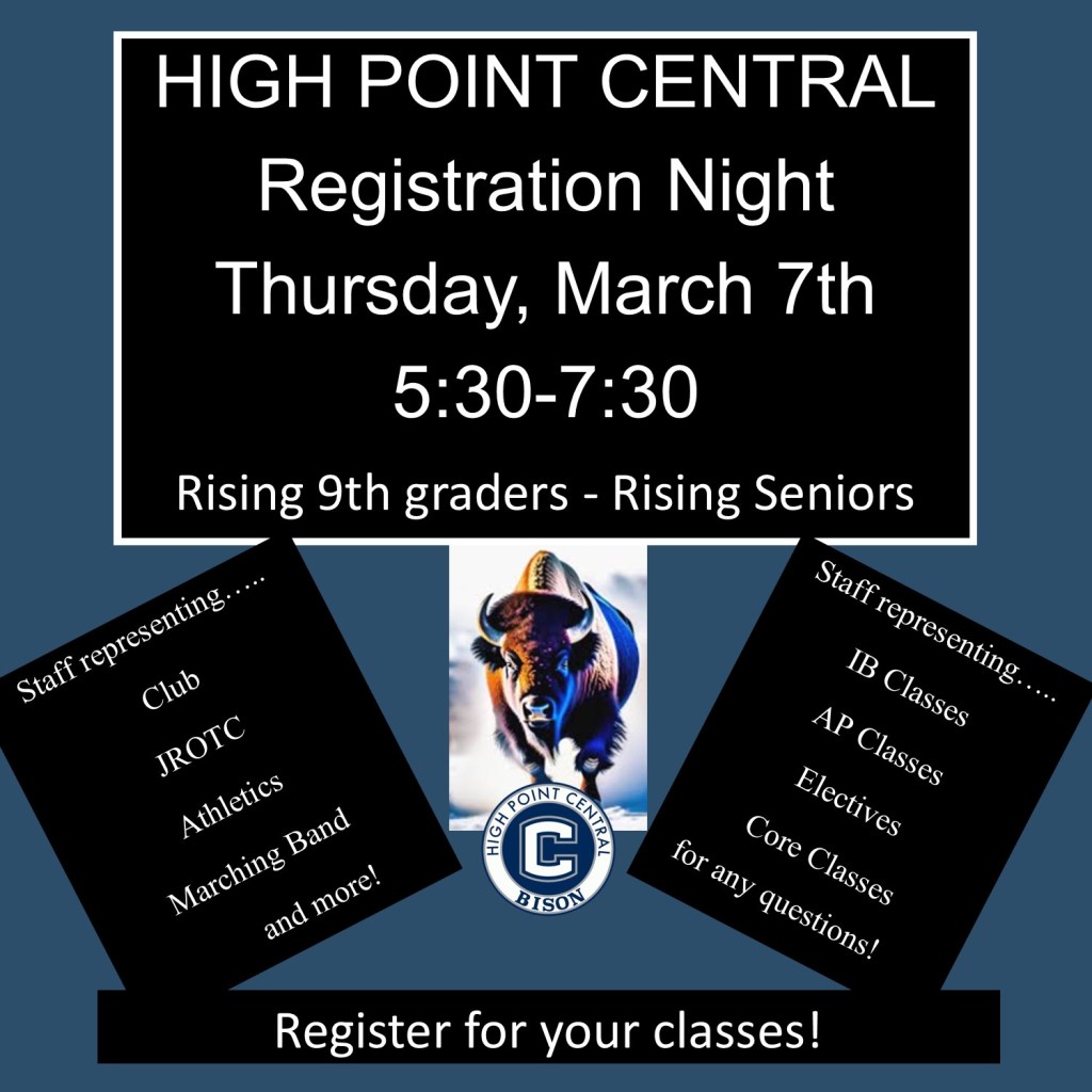 This Thursday, March 7th, we will have a registration fair. This is the night you sign up for your classes! There will be a food truck on site, and representatives from clubs, electives, sports, and all of the curriculum. Thursday, March 7th, from 5:30-7:30