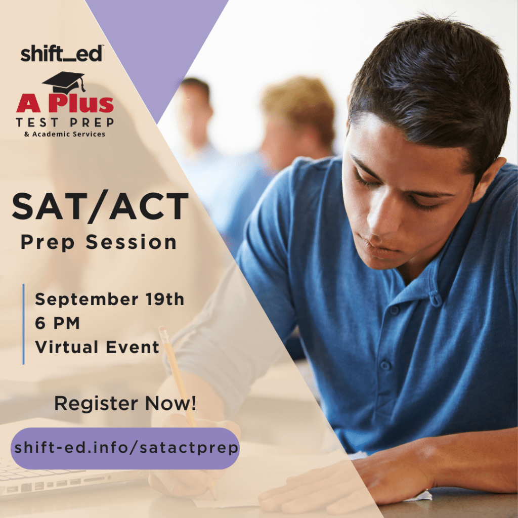Shift_ed will host a virtual SAT / ACT Prep Session on September 19 beginning at 6:00 pm. See your counselor or Mr. Harper for registration information.