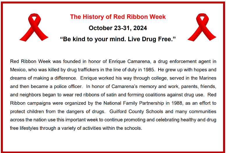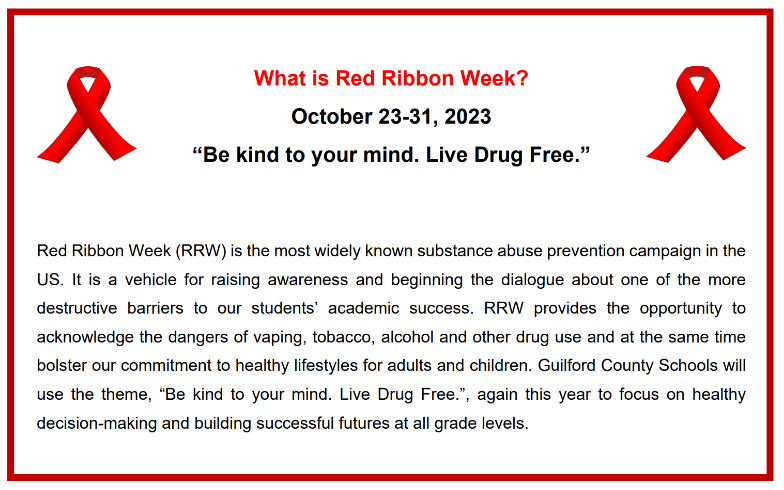 This week marks the beginning of Red Ribbon week. Red Ribbon week is the most widely known substance abuse prevention campaign in the U.S. It’s a time to raise awareness and have the conversations about how vaping, tobacco, alcohol, and other drug use are destructive barriers to our student’s success. Starting Monday this week, we will continue our current vibe of Spirit week and have a Red Ribbon Spirit Week. . Heads up, Monday will be “Put the Cap on Drugs – Wear your favorite Cap! Let’s see how creative our Bisons can get!