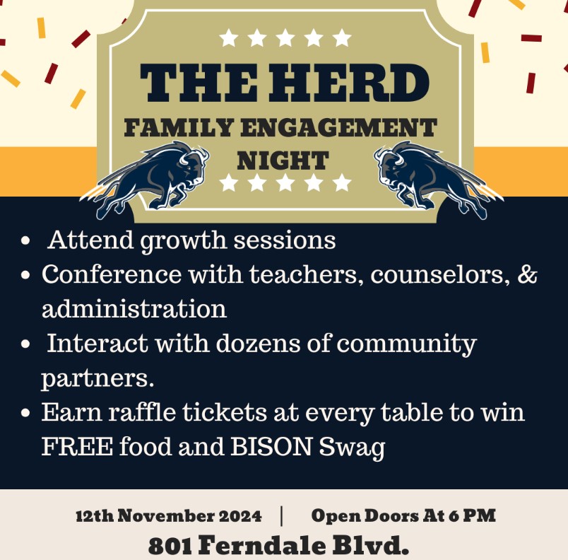 This Tuesday, November 12th, we have a Community Engagement Night. There will be free food, an opportunity to get your report card early from your teachers, colleges and university, work force representatives, FAFSA sessions, Stem Sessions and opportunities from the infamous Dr. Draelos, Mental Health sessions, dangers of vaping, Performing and Visual Arts, Attendance check-ins and more! This is a no miss event!