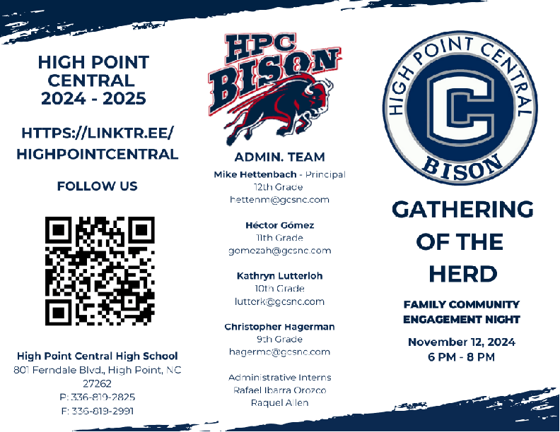 I hope you have heard the amazing news! High Point Central was named the prestigious Hubert Humphrey Most Improved School at the state of the county banquet. This is a testament to the passion and perseverance of our amazing staff, the students that work hard, use resources in front of them and set high goals. The parents and guardians who advocate for their student while also supporting the school, and of course our powerful alumni and community members! If you have not seen the news segment, simply go to google and type in High Point Central Hubert Humphrey award. WFMY did a great job!