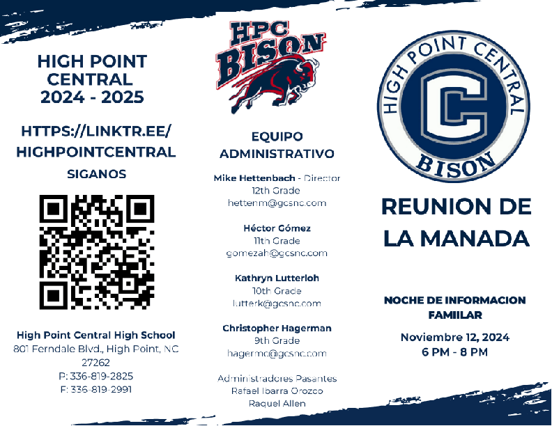 Good evening! This is Principal Hettenbach from High Point Central High School with a message from the Boulevard.
