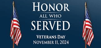 We do not have school tomorrow, Monday, as we recognize Veteran’s Day, honoring military veterans of the United States Armed Forces. Thank you very much for your service!