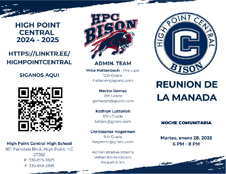 Good evening! This is Principal Hettenbach from High Point Central High School with a message from the Boulevard.