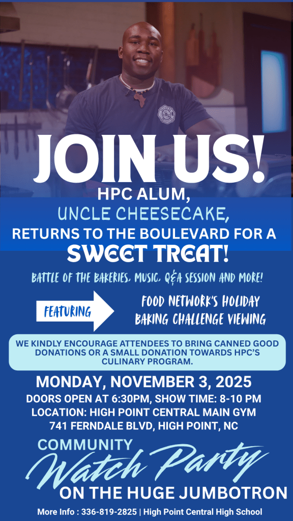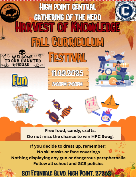 This is a big week! Monday night, we have our 2nd quarter Gathering of the Herd! We will have our Fall Festival from 5:00 to 7:00, Haunted trail, along with HPC Alum, Daniel Gray, owner of Uncle Cheesecake on campus in our Main gym for a watch party for the premiere of this season’s Holiday Baking Challenge where he will be competing!