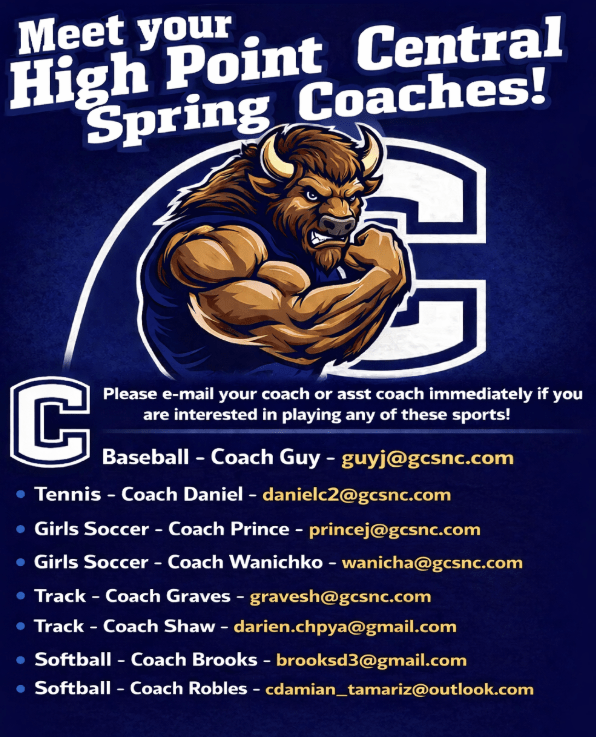 Spring sports are now about to get underway and all coaches’ contacts have been shared as well. If your student ins interested in a sport, please make sure they are contacting the coach immediately.