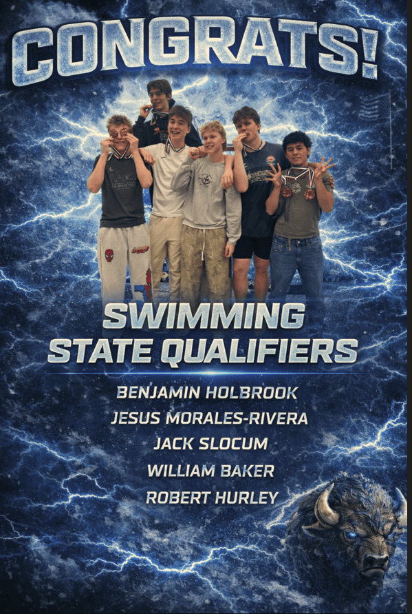 Congratulations to the swimmers who qualified for this years states meet! Jesus Morales-Rivera, Benjamin Holbrook, Jack Slocum, Bert Hurley, and Will Baker each qualified in both a relay and individual events. Swimmers beat their personal best times and are excited to run-it-back next season!