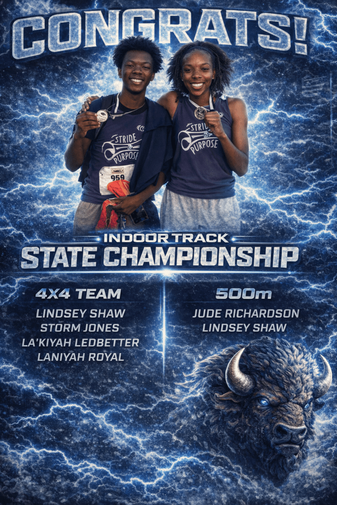 In the boys 500m dash, Jude Richardson finished 6th in the entire state. Lindsey Shaw finished 9th in the entire state in the Girls 500 meter dash, and Lindsey Shaw, Storm Jones, Laniyah Royal, and LaKiyah Ledbetter finished 8th overall in the girls 4×400 meter relay in the states.